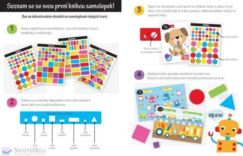 První kniha se samolepkami pestrobarevných tvarů určená těm nejmenším. Naučí děti užívat si zábavu při dolepování a dokreslování roztomilých obrázků.