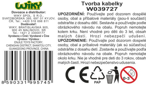 Tvorba kabelky. Obrázkový návod na sestavení na zadní straně obalu.