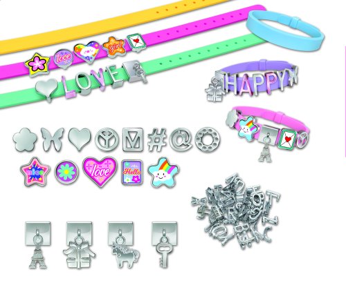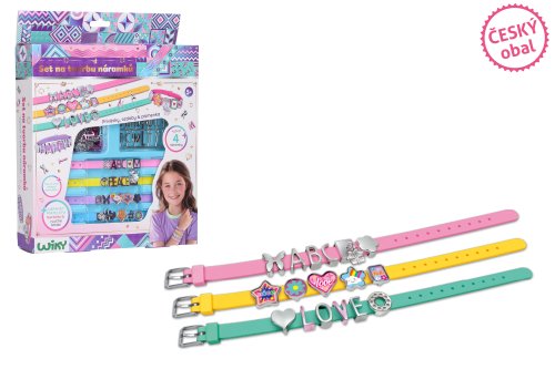 Tvorba náramků s písmeny. Obsah balení - 4 náramky s nastavitelnou velikostí, písmenka, přívěšky.