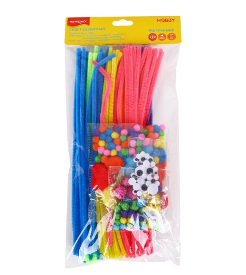 Velká kreativní sada bambulek, drátků a očiček. Tato bohatá tvořivá sada obsahuje přes 270 ks barevných bambulek, chlupatých drátků a dekoračních očiček (drátky 30 cm x 110 ks, bambulky 0,8 cm x 26 ks, 1 cm x 80 ks, 1,2 cm x 10 ks, 2 cm x 4 ks, 2,5 cm x 10 ks, 4 cm x 5 ks, očička 7 mm x 20 ks, 10 mm x 6 ks, 15 mm x 4 ks). Všechny komponenty jsou netoxické a vyrobené ve vysoké kvalitě. Materiál lze lepit, stříhat i tvarovat, takže je ideální pro výrobu různých postaviček, zvířátek, ozdob i originálních dekorací. Skvělá volba pro školní projekty, domácí tvoření i jako zábavný dárek pro malé kreativce.