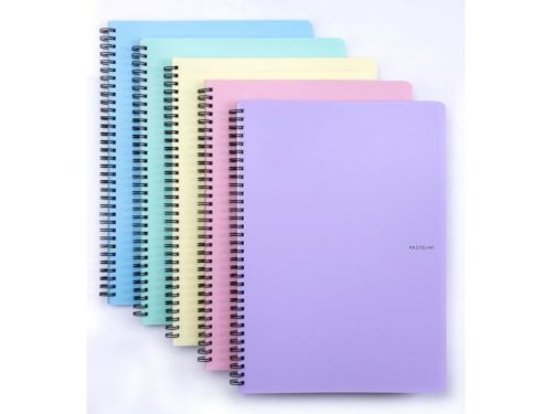 Blok v moderních pastelových barvách ve formátu A5, boční vazba twin wire umožňuje snadné otáčení a odtrhávání stránek, linkovaný, 60 listů.
