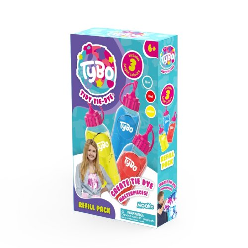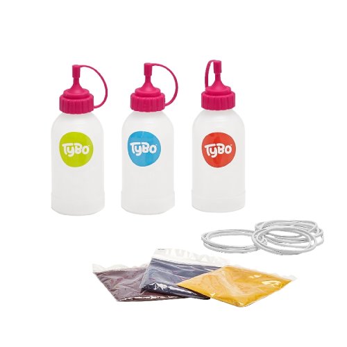 A co je Tybo Batikovací design studio? Je to sada. která má vše co potřebujete k výrobě batikovaných triček nebo třeba plátěných tašek. Toto studio obsahuje návody na různé druhy batikování, elastické provázky, díky nimž jsou výtvory pokaždé dokonalé a pestrobarevné prášky s lahvičkama na barvení.