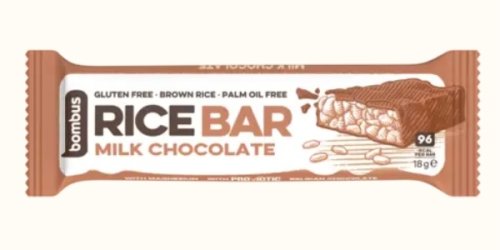 Tyčinka z hnědé rýže s mléčnou čokoládou.
