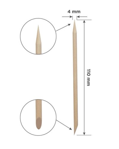 Profesionální dřevěná tyčinka ideální pro precizní manikúru. Díky optimální velikosti a tvaru zajišťuje pohodlné použití a maximální přesnost při úpravě nehtů.