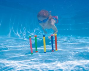Vhoďte tyčky do vody a ty budou klesat dolů díky zátěži, která je uvnitř. Úkolem těch, kteří se účastní této zábavné hry, je vylovit tyčky. Díky výrazným barvám je lehké je najít a vylovit. Vhodné od 6 let.