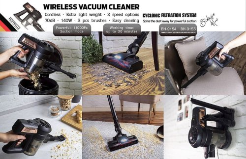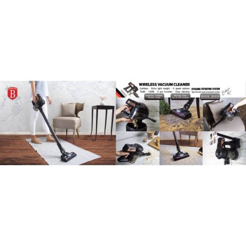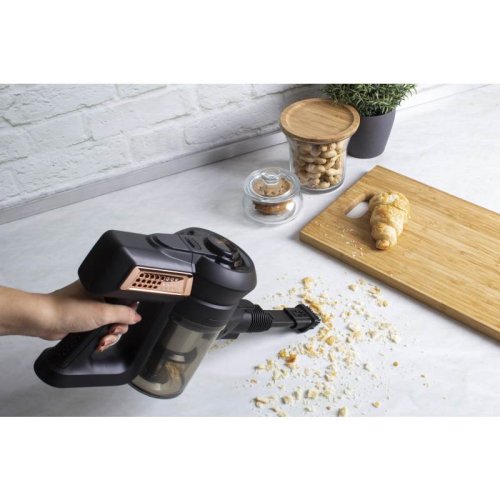 • Napětí: 22,2 V (Li-ION)<BR>• 140 W<BR>• 11Kpa výkonné sání<BR>• Příslušenství:<BR>Hubice s turbokartáčem 2v1<BR>Štěrbinová hubice<BR>• Barva: černo-rosegold