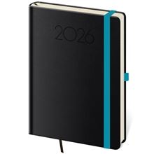 Diář je vyroben ze zajímavé matné koženky s nepravidelnou strukturou, navíc je doplněn o gumičku pro uzavření v kontrastní barvě.