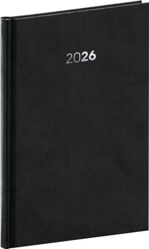 Plánovací týdenní diář Balakon 2026 v černém provedení, doplněný o stříbrný letopočet. Povrch diáře si získal oblibu díky kvalitnímu svrchnímu materiálu, který je extrémně odolný vůči vnějšímu poškození. Týdenní rozvrh s česko-slovenským kalendáriem a doplňkovou angličtinou, němčinou, maďarštinou a ruštinou.