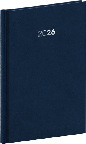 Plánovací týdenní diář Balakon 2026 v tmavě modrém provedení, doplněný o stříbrný letopočet.
