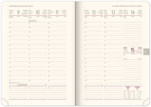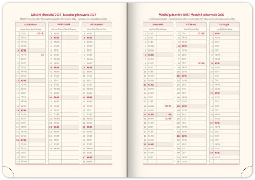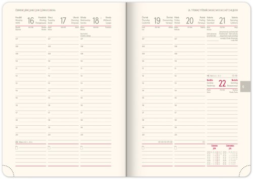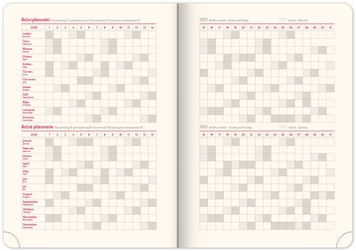 Týdenní diář Vivella Top 2025 v oranžové barvě. Nová kolekce vsadila na osvědčené barvy, které doplňuje nová ražba letopočtu. Týdenní rozvrh s česko-slovenským kalendáriem a doplňkovou angličtinou, němčinou, maďarštinou a ruštinou.