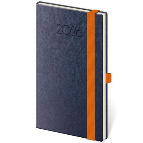 Diář je vyroben ze zajímavé matné koženky s nepravidelnou strukturou, navíc je doplněn o gumičku pro uzavření v kontrastní barvě.