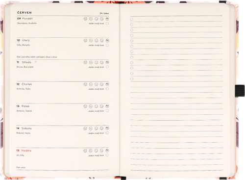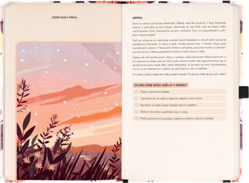 Laskavý diář vás provede rokem, nabídne motivační texty, inspirativní tipy a prostor pro zaznamenání cílů i poznámek.Laskavý diář vás provede cestou k vyváženému a pozitivnějšímu roku. Každý měsíc přináší motivační texty laděné podle aktuálního období, inspirativní aktivity a prostor pro stanovení malých cílů. Týdenní kalendárium doplňuje měsíční přehled na začátku každého měsíce, náladoměr a dostatek místa pro všechny vaše poznámky a plány.