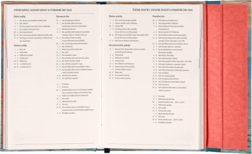 Týdenní diář s praktickým magnetickým uzavíráním je ideální volbou pro ty, kteří chtějí mít své plány přehledně pod kontrolou. Horizontální rozložení s českým a slovenským kalendáriem ve verzi týden na dvou stranách s prostorem pro poznámky. Součástí jsou praktické měsíční přehledy, ideální pro plánování dovolených či prázdnin, a také seznam českých a slovenských svátků a jmenin.