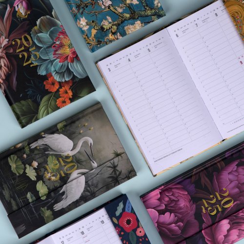 Šestijazyčný týdenní diář s magnetickým uzavíráním obsahuje přehled mezinárodních svátků, seznam českých a slovenských jmen, přehled roku 2025 a 2026, dodatečné stránky na poznámky a kapsičku na zadní předsádce. Sloupcové rozvržení s prostorem pro poznámky na každý den. Diář je v designu s motivem květin.