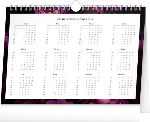 Stolní kalendář, díky kterému můžete pro jednotlivé členy domácnosti naplánovat každotýdenní rodinné aktivity nebo jen přehledně plánovat svůj osobní i pracovní život. Díky háčku ho můžete zavěsit na stěnu či ponechat na stole. Obsahuje české a slovenské kalendárium se jmény, svátky a památnými dny, měsíční přehled a dostatek prostoru na poznámky.