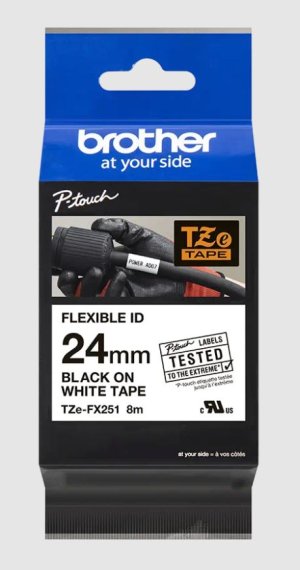 Ideální pro vytváření identifikačních štítků pro kabely, vodiče, PVC trubky nebo jiné válcovité tvary. Speciální lepidlo pásky Brother TZe-FX251 s černým tiskem na bílém podkladu zajišťuje, že vaše důležité štítky budou mít dlouhou životnost. Kompatibilní s tiskárnami štítků P-touch, které mají logo TZ nebo TZe na krytu kazety s páskou.