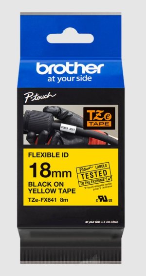 Ideální pro vytváření identifikačních štítků pro kabely, vodiče, PVC trubky nebo jiné válcovité tvary. Speciální lepidlo pásky Brother TZe-FX641 s černým tiskem na žlutém podkladu zajišťuje, že vaše důležité štítky budou mít dlouhou životnost. Kompatibilní s tiskárnami štítků P-touch, které mají logo TZ nebo TZe na krytu kazety s páskou.