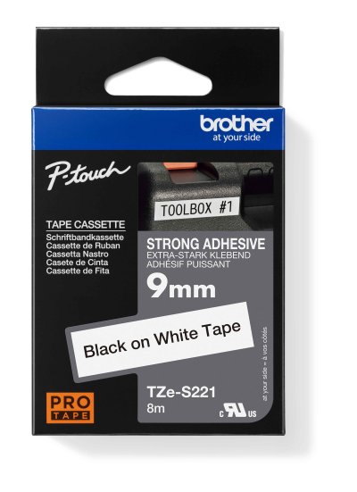 Originální kazeta s laminovanou páskou TZe-S221 kompatibilní s širokou řadou tiskáren Brother P-touch je zvláště všestranná díky své snadno čitelné černé a bílé barvě - ideální pro domácnost domácnosti, kancelář a další pracoviště.