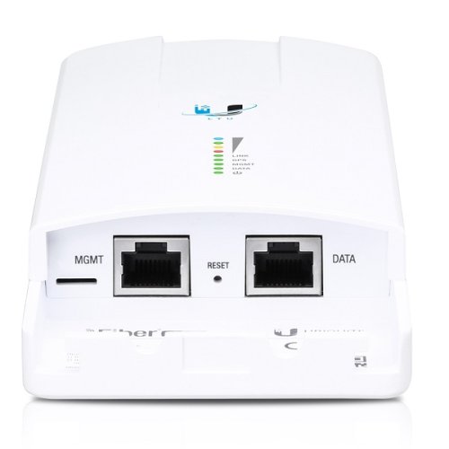 AirFiber AF-5XHD má 2× RJ45 Gigabitové ethernetové porty. První slouží pro data, druhý port je určený pro Management nebo jako záložní pro PoE napájení.
