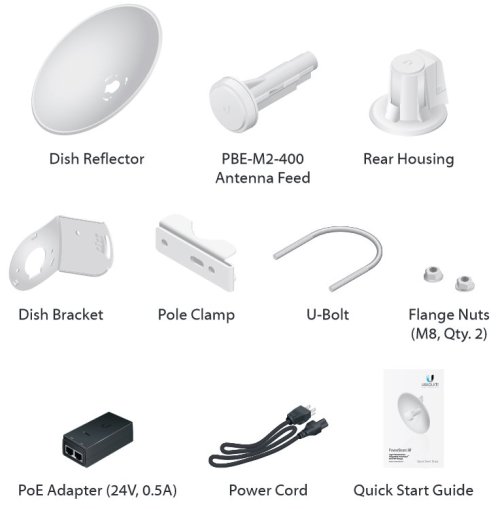 Uvnitř PowerBeamu se nachází výkonný MIPS procesor Atheros 74KC s frekvencí 560MHz, kterému sekunduje 64MB operační paměti typu DDR2 a 8MB Flash paměť. Síťový port podporuje 10/100 Ethernet a lze po něm jednotku napájet pasivním PoE 24V/0,5A (aktivní PoE dle 802.3af není podporováno). Teoretická maximální propustnost jednotky je 300Mbit (MCS15,802.11n, 2x2 MIMO, při šířce kanálu 40MHz).