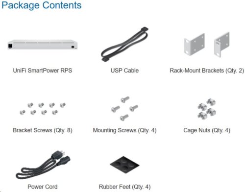 Redundantní napájecí systém UniFi SmartPower USP-RPS je patentovaný redundantní napájecí systém určený k ochraně až šesti zařízení podporovaných UniFi SmartPower před náhlou poruchou napájecího modulu.