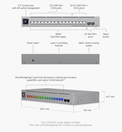USW-Pro-Max-16-PoEpro správnou funkci je doporučeno použít Ubiquiti UniFi Etherlighting Patch kabely