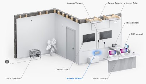 Ubiquiti Pro Max 16-PoE je novým L3 switchem, který nabízí 4x 2.5 Gbps porty s PoE++ až 60W a 12x 1 Gbps porty s PoE+. Celkový PoE budget je 180 W. Pro připojení pomocí optického rozhraní jsou připraveny 2 SFP+ porty dosahující rychlosti až 10 Gb/s. Switch je napájen DC adaptérem 54V DC 210W.