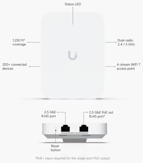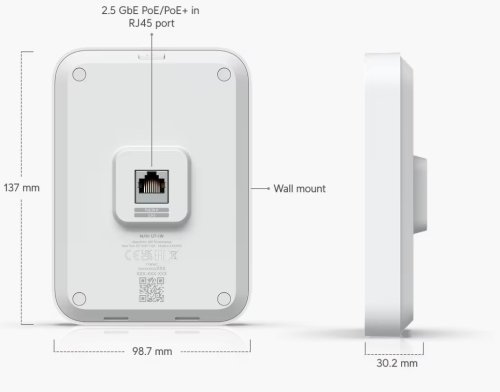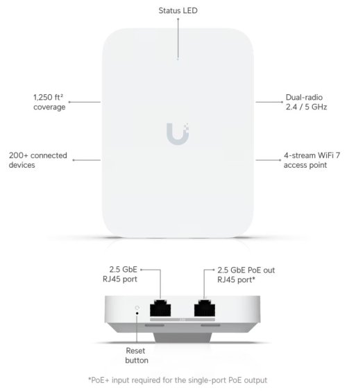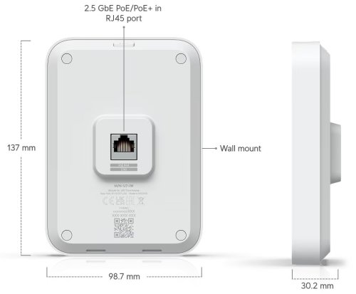 UniFi U7 In-Wall nástěnný přístupový bod WiFi 7 se čtyřmi datovými proudy a integrovaným 2,5 GbE PoE switchem