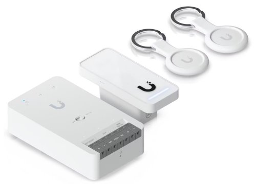 Obsah startovací sady: 1× UA-Hub-Door-Mini (rozbočovač/kontroler) 1× Ubiquiti UniFi Access Reader G3 (přístupová čtečka) 2× Identifikační čip UA-Pocket (identifikační/přístupová karta)