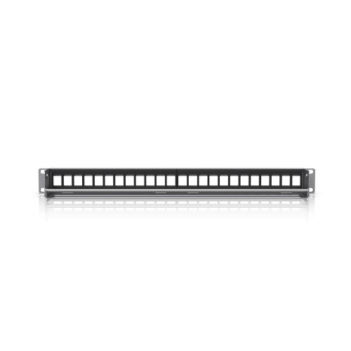 24portový neosazený patch panel Keystone 1U patch panel s lištou pro správu kabelů