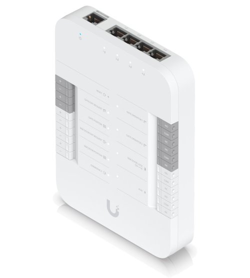 UniFi Access Door Hub je inteligentní IP kontrolér jedné brány, který je součástí řešení UniFi Access. Umožňuje bezproblémové ovládání přístupu k bráně prostřednictvím připojených přístupových čteček nebo interkomu. Splňuje certifikace CE, FCC, IC, UL 294 a CAN/ULC-60839-11-1 (Třída 1).
