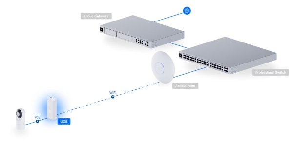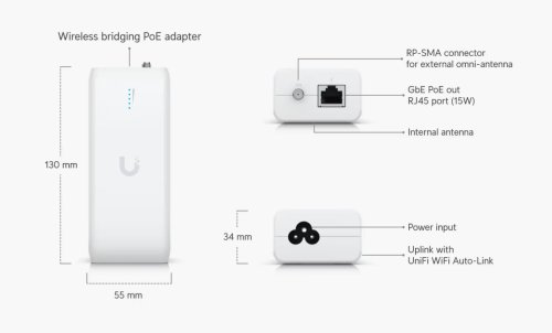 Tento plug-and-play 5 GHz bezdrátový bridge umožňuje point-to-point připojení k jinému UDB zařízení na krátké vzdálenosti až několika stovek metrů. Disponuje jedním GbE RJ-45 PoE-Out portem pro napájení jiného zařízení, jako jsou kamery a další. Samotné zařízení je napájeno kabelem ze sítě.