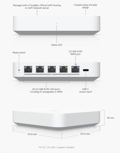 UniFi Gateway Max kompaktní multi-WAN UniFi brána s plnou podporou 2,5GbE pro vysoce výkonné sítě v malých až středních podnicích