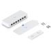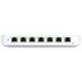 UniFi Switch Ultra je osazen sedmi výstupními GbE PoE+ RJ-45 porty a jedním vstupním GbE PoE++ RJ-45 portem. Jedná se o L2 switch s celkovou kapacitou 16 Gbps, neblokovanou propustností 8 Gbps a PoE budgetem až 202 W (v závislosti na typu napájení). Switch lze napájet buď přes DC konektor (54 V DC), nebo přes PoE++ (802.3at/bt) vstup na zadní straně. Díky přiloženému držáku jej lze snadno upevnit na stěnu.