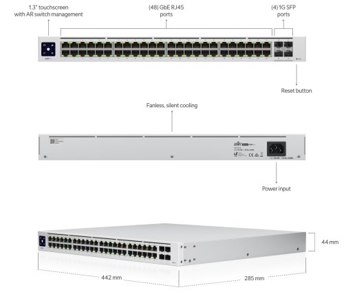 USW-48 je plně managovatelný switch se 48x 1Gbps ethernet porty a 4x 1Gbps SFP porty. Switch má ve výbavě bohatou škálu L2 funkcí, navíc je zcela tichý - bez ventilátorů. Díky aplikaci UniFi Network application a mobilní aplikaci UniFi Network můžete switch konfigurovat a spravovat všechny funkce za pomoci intuitivního grafického rozhraní odkudkoliv.