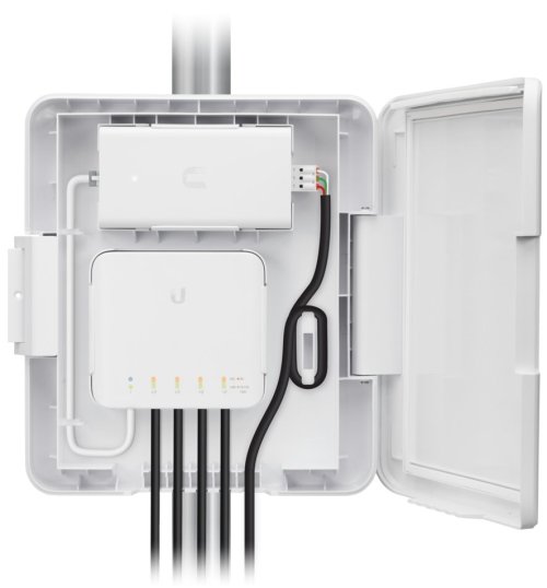 Funkce: *Venkovní kryt odolný proti povětrnostním vlivům *Max. PoE rozpočet 46W *Čisté vedení kabelů a šroubový zámek pro zabezpečení *Zahrnuje ethernetový patch kabel a 60W PoE adaptér *Kompatibilní s Switch Flex