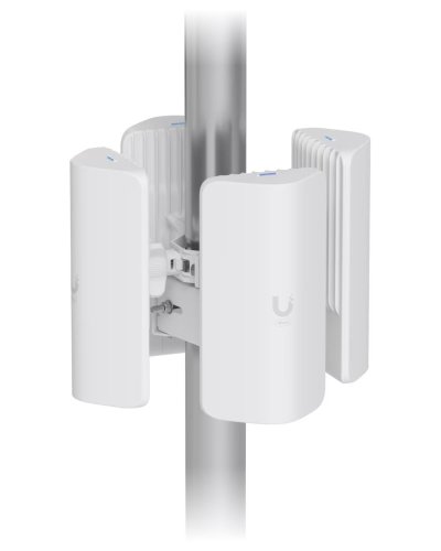 Stožárový držák pro uchycení čtyř Ubiquiti Wave AP Micro pro 360° pokrytí. Navrženo pro použití ve větru do 200 km/h. Držák je odolný proti korozi.