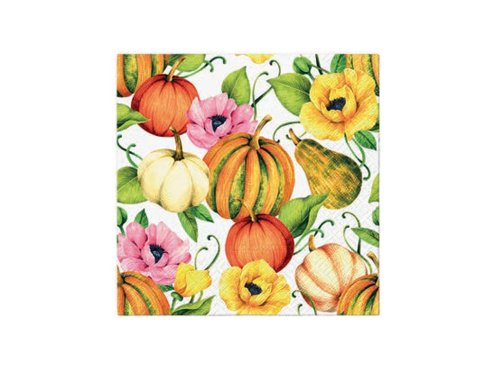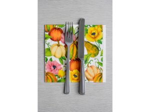 Stylové ubrousky s jemným motivem dýní a máků pro slavnostní i běžné podzimní stolování. Balení obsahuje 20 ks třívrstvých ubrousků o rozměru 33 × 33 cm.