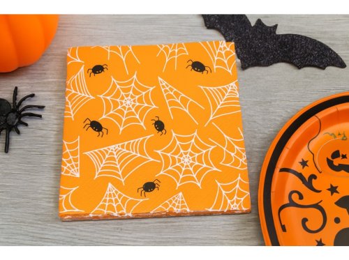 Papírové ubrousky s motivem pavučiny, perfektní doplněk pro Halloween výzdobu a servírování. Rozměr 33 × 33 cm, 3vrstvé, balení obsahuje 20 kusů.