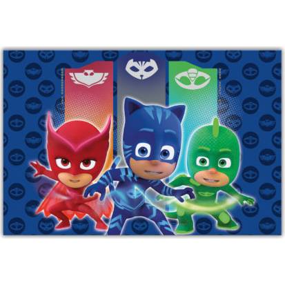 Plastový ubrus na stůl s motivem PJ Masks. Rozměry 180 x 120 cm.