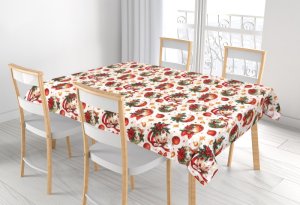 Ubrus VÁNOCE materiál 50% Bavlna, 50% Polyester 170g/m2 praní na 40°C šetrné odstředění sušit v sušičce nedoporučujeme žehlit do 150°C Dekorační látkový ubrus, který doplní váš interiér.
