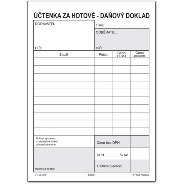 Účtenka za hotové