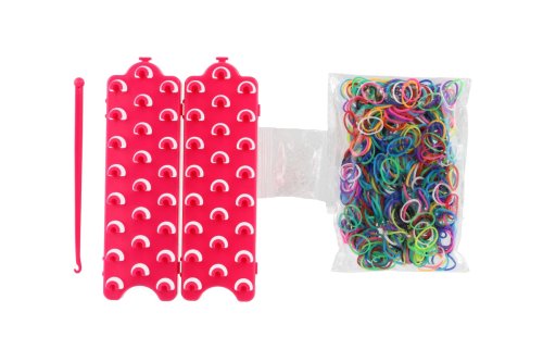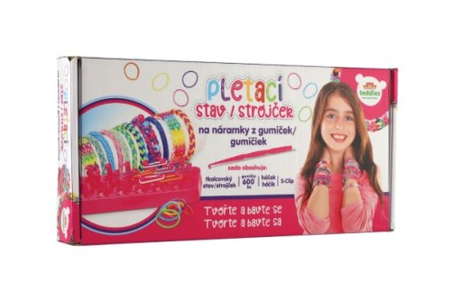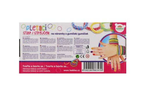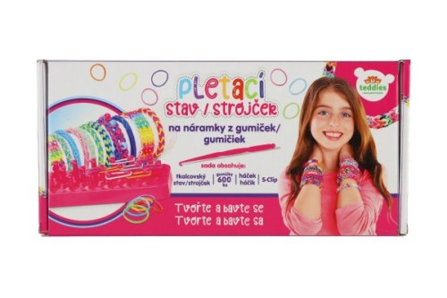 Tkalcovský stav na splétání gumiček mohou děti využít na výrobu náramků, gumiček do vlasů nebo třeba originální klíčenky. Vyrobit si mohou náramek v oblíbené barevné kombinaci nebo ho věnovat kamarádovi či kamarádce. Fantazii se meze nekladou. Splétání gumiček rozvíjí soustředění, představivost a trénuje manuální zručnost. Balení obsahuje: 600 ks silikonových gumiček různých barev, třířadý tkalcovský stav, háček na provlékání, uzávěry a návod. Rozměr krabičky: 27 x 13 x 4 cm Vhodné od 3 let