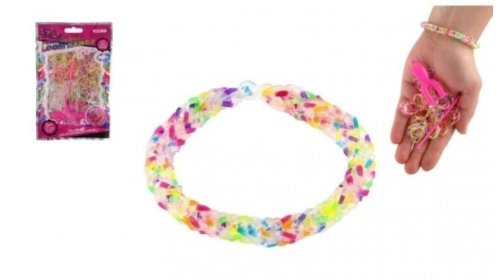 Vyrobte si náramek v oblíbené barevné kombinaci nebo jej darujte kamarádovi či kamarádce. Fantazii se meze nekladou! Vyrobte si ozdobu takovou, jakou budete mít jen vy nebo člověk, na kterém Vám záleží! Vše potřebné k výrobě najdeš uvnitř balení. Obsah:2 00 silikonových gumiček různých barev, pomůcku na provlékání, háček a 10 uzávěrů.Rozměry balení: 10 x 16 cmVhodné pro děti od 3 let