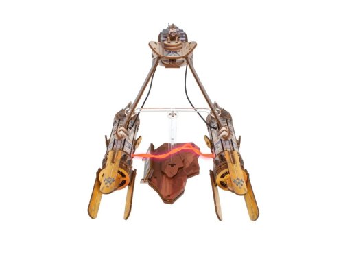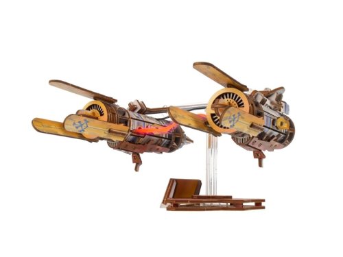 Postavte si svůj vlastní kluzák a závoďte stejně jako Anakin Skywalker! Dřevěný model se houpe do stran, nechybí ani dva detailní motory, které jsou spojeny plazmovým obloukem.Dokážete vyhrát závod Boonta Eve Classic stejně jako Anakin ve filmu Skrytá hrozba? Dvojité motory propojuje svítící LED plazmový oblouk, za nimi se nachází malý kokpit. Tento ikonický kluzák mladému Anakinovi pomohl získat svobodu na domovské písečné planetě Tatootine. Sám si jej nadesignoval i postavil, toto oblíbené vznášedlo v sobě spojuje ryzí sílu, nebojácné pilotování a soutěživého ducha budoucího Jediho.Skládačka je postavena na akrylové noze, která jí pohybuje ze strany na stranu, simuluje tak let kluzáku! Anakin Skywalker sedí uvnitř detailního kokpitu, jehož boční dveře lze otevřít. Dva motory jsou propojeny flexibilními LED vodiči napájenými bateriemi, ty však nejsou součástí balení. Vytvářejí charakteristický efekt plazmového oblouku, stejně jako ve filmu. Pro aktivaci světel jednoduše přepněte spínač umístěný pod motory a sledujte, jak se oblouk probouzí k životu. Pokud se baterie vybije, žádný problém, výměna je opravdu snadná.Model je vyroben z kvalitní barevné překližky tak, aby opravdu dokázal balancovat. Přidáte jej do své Star Wars sbírky? Hlavní vlastnosti: Star Wars model s podstavcem s elektrickým pohonem napájeným bateriemi (nejsou součástí balení)magnetická akrylová noha podstavce vytváří efekt letukluzák manévruje ze strany na stranuotevírací kokpitfigurka Anakina, pohled zepředu a zbokudetailní zpracovánímontáž bez lepidla a nástrojůobsahuje 240 dílkůstřední obtížnost
