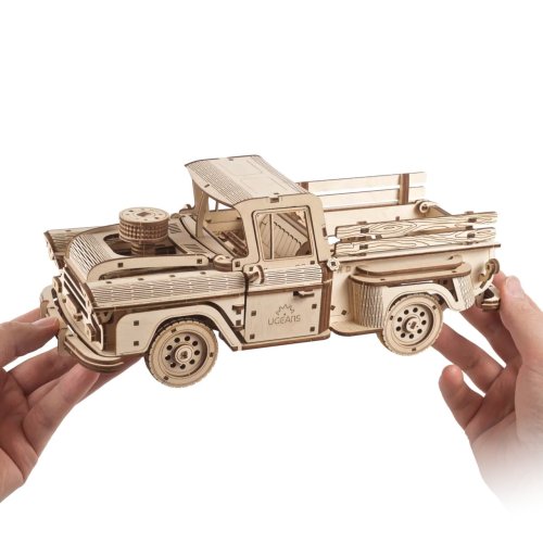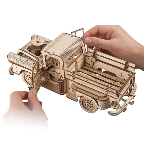 Žádný náklad není dost těžký! Stavebnice náklaďáku vyrobená z překližky. Vraťte se do časů, kdy jste k opravě motoru svého auta nepotřebovali titul z informatiky! Pokud se nezaleknete žádné práce jako tento neúnavný dříč, bude pro Vás jeho stavba hračkou. Každého fanouška veteránů nadchne svými tvary, které byly inspirovány klasickým americkým pick‑upem Chevrolet 3100 z roku 1959. Jeho pohon zajišťuje výkonný pružinový motor patřící mezi špičku nabídky modelů UGEARS, náklaďák tak na jedno natažení urazí až šest metrů a na své korbě uveze bezmála půl kilogramu nákladu! Je vybaven nejen převodovkou umožňující zpětný chod a provoz na neutrál, ale také diferenciálem, díky němuž nabízí výjimečné manévrovací schopnosti! Směr jízdy lze snadno ovládat a zajistit, vůz se tak může po zvolené trase pohybovat i zcela samostatně. S dokonalým uspokojením pak můžete sledovat práci odpružených náprav při jízdě s nákladem a v terénu. Funkčními ozdobami modelu jsou i další mechanické detaily. Dveře můžete otevírat zvenčí i zevnitř a kapota ukrývá motor, který se za provozu realisticky otřásá. Ukažte ramena a uspořádejte závody s dalšími modely UGEARS! Vybaveno detailním návodem k sestavení. Hlavní vlastnosti:460 precizně vyřezaných dílkůvysoká obtížnost sestaveníotevíratelné dveře a kapotavýsledný model je řiditelný a schopný samostatné jízdy včetně zpátečkynavrženo a vyrobeno na Ukrajině
