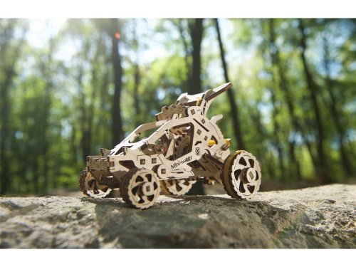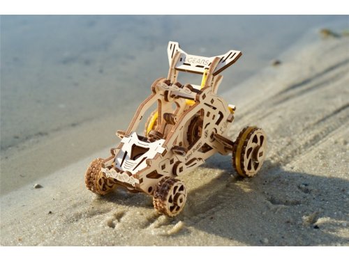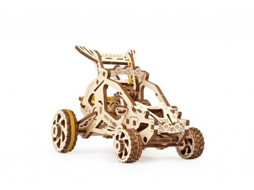 Kdo si chce zadovádět v dunách. Stavebnice písečné buginy vyrobená z překližky. Nepřemůže Vás svou náročností, k sestavování mohou být pod dohledem přizváni i mladší. Mechanika modelu podnítí jejich zvídavost. Vůz je řiditelný a díky natahovacímu mechanismu je schopen jízdy. Pogumování zadních kol zajišťuje spolehlivý kontakt s povrchem jízdní dráhy. Uspořádejte závody s dalšími modely UGEARS! Vybaveno detailním návodem k sestavení. Hlavní vlastnosti: 80 precizně vyřezaných dílkůnízká obtížnost sestavenívýsledný model je řiditelný a schopný samostatné jízdynavrženo a vyrobeno na Ukrajině
