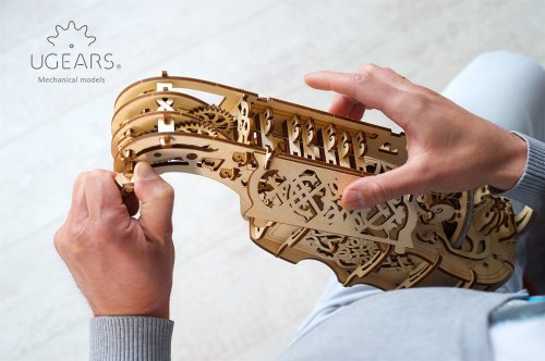 Středověk neskončil! Stavebnice mechanického hudebního nástroje vyrobená z překližky. Úspěšná crowdfundingová kampaň dala vzniknout jedinečnému klenotu, a to vůbec prvnímu plnohodnotnému hudebnímu nástroji mezi známými modely z překližky! Inspirována středověkým uměním nabízí niněra unikátní sadu vlastností a je oceňována pro svou propracovanou mechaniku, zvuk i poutavé provedení. Bude se vyjímat jak při zábavě s přáteli, tak i na poličkách a ve vitrínách! Už při stavbě můžete dát vydatně odpočinout své mysli od všedních starostí. Sestavování Vás nezaskočí náročností a v jeho průběhu budete odměňováni atraktivními detaily, ať už nápaditými ornamenty, nebo pohybem planetového převodu. Jak bude nástroj pod Vašima rukama ožívat, zažijete vzrušující zábavu. Hotový model Vám přinese pocit hrdosti a uspokojení. A co teprve až se na něj začnete učit hrát! Niněru rozehrajete otáčením klikou, šesticí kláves lze pak snadno ovládat výšku tónu melodické struny. Druhá, stálehrající (bourdonová), struna přitom hraje v souzvuku s melodickou v nastaveném intervalu (kvarta, kvinta, oktáva). Nástroj lze pomocí kolíčků na hlavě jednoduše a velmi jemně ladit díky redukčním převodům. Stálehrající strunu je možno nejen pro snadnější ladění utlumit pomocí malé páčky. Otočnými knoflíky na kobylce je možno upravit polohu a kontakt strun s třecím kolečkem. Pro jasný zvuk je součástí stavebnice kalafuna k natírání třecího kolečka. Součástí detailního obrázkového návodu k sestavení je také několik hudebních tabulatur, které Vám mohou pomoci v začátcích. Postup ladění, lekce hry a doplňkové tabulatury můžete také nalézt v popisu níže. Hlavní vlastnosti:292 precizně vyřezaných dílkůstřední obtížnost sestavení2 struny, 6 kláves, široké možnosti jemného laděnínavrženo a vyrobeno na Ukrajině OTEVŘÍT POSTUP LADĚNÍ A LEKCE HRY NA NINĚRU tabulatura Rolničky (Jingle Bells) tabulatura Starý farmář (Old MacDonald Had A Farm) tabulatura Středověký Rock’n’Roll tabulatura Dřeváčkový bránl (Branle des Sabots) tabulatura Moderní Rock’n’Roll tabulatura Národní hymna USA tabulatura Hra o trůny (Game of Thrones) tabulatura Národní hymna Ukrajiny tabulatura Óda na radost tabulatura Ukrajinská lidová píseň Měsíční noc (Ніч яка місячна)