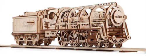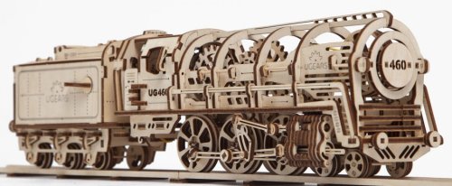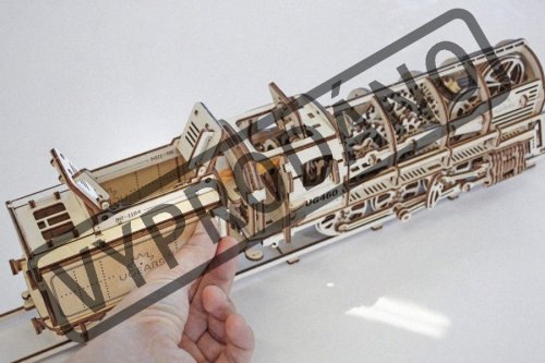 Zlatou érou železnice. Stavebnice parní lokomotivy s tendrem vyrobená z překližky. Tendr má střešní dvířka a nabízí úložný prostor i pro případ, že model bude stát ve vitríně. Mechanika je do detailu propracovaná, vy tak můžete pozorovat pohyb klikového mechanismu dvojkolí modelu. Lokomotiva je zbavena pláště, a lze tak pozorovat i chod soukolí uvnitř. Díky natahovacímu mechanismu je model schopen jízdy. Má funkční převodovku pro volnoběh a zpátečku. Může se pyšnit dalšími mechanickými podrobnostmi, dveřmi kabiny strojvedoucího, sklopným žebříkem, dvířky střešní ventilace, nebo i spřáhlem. Lokomotiva je posazena na krátkém rovném úseku tratě, který lze rozšířit stavebnicí přejezdu. Mezi nabízeným traťovým příslušenstvím naleznete i model nástupiště, s nímž prohloubíte celkový zážitek ze stavby a provozu modelu. Uspořádejte závody s dalšími modely UGEARS! Vybaveno detailním návodem k sestavení. Hlavní vlastnosti: 443 precizně vyřezaných dílkůvysoká obtížnost sestaveníúložný prostormnožství mechanických detailůrozšiřitelný o bohaté příslušenstvívýsledný model je schopný samostatné jízdy včetně zpátečkynavrženo a vyrobeno na Ukrajině