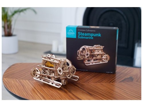 Podívejte se se mnou na zázraky podmořského světa! Dřevěný model steampankové ponorky je v měřítku 1:48, cestuje asi 2,5 metru na svém gumovém pásovém motoru, je vybaven spínačem Start / Stop pro snadné ovládání a může cestovat v přímém směru nebo provádět levé a pravé zatáčky. Převodový systém ovládá pohyblivé vrtule, aby vaše ponorka získala iluzi podvodního pohonu. Steampunkový styl vyjadřuje myšlenku, že toto plavidlo není žádný sériový výrobní model, ale spíše realizace vášně jednoho brilantního, excentrického vynálezce pro podmořský průzkum. Ponorka je vyrobena z atraktivního kompozitního dřeva umělecké kvality s laserovými předřezanými kusy pro snadnou montáž. S pouhými 200 díly jej i začátečníci až středně pokročilí modeláři mohou sestavit během několika hodin. Pro montáž není potřeba žádné lepidlo ani speciální nástroje – stačí jednotlivé díly přicvaknout podle ilustrovaných pokynů dodaných se sadou (v angličtině, němčině, ukrajinštině, francouzštině, polštině, španělštině, portugalštině, japonštině, italštině, čínštině a korejštině). Můžete ponorku nechat v přírodním dřevěném stavu nebo ji natřít či namořit barvou dle vlastního výběru, dokonce i žlutou! Steampunková ponorka osloví každého fanouška modelových lodí a přidá jedinečného účastníka do jeho sbírky lodí a plavidel. Hlavní vlastnosti: 249 precizně vyřezaných dílkůtěžká obtížnost sestavenínavrženo a vyrobeno na Ukrajině Dokumentace: Obrázkový návod ke stažení zde